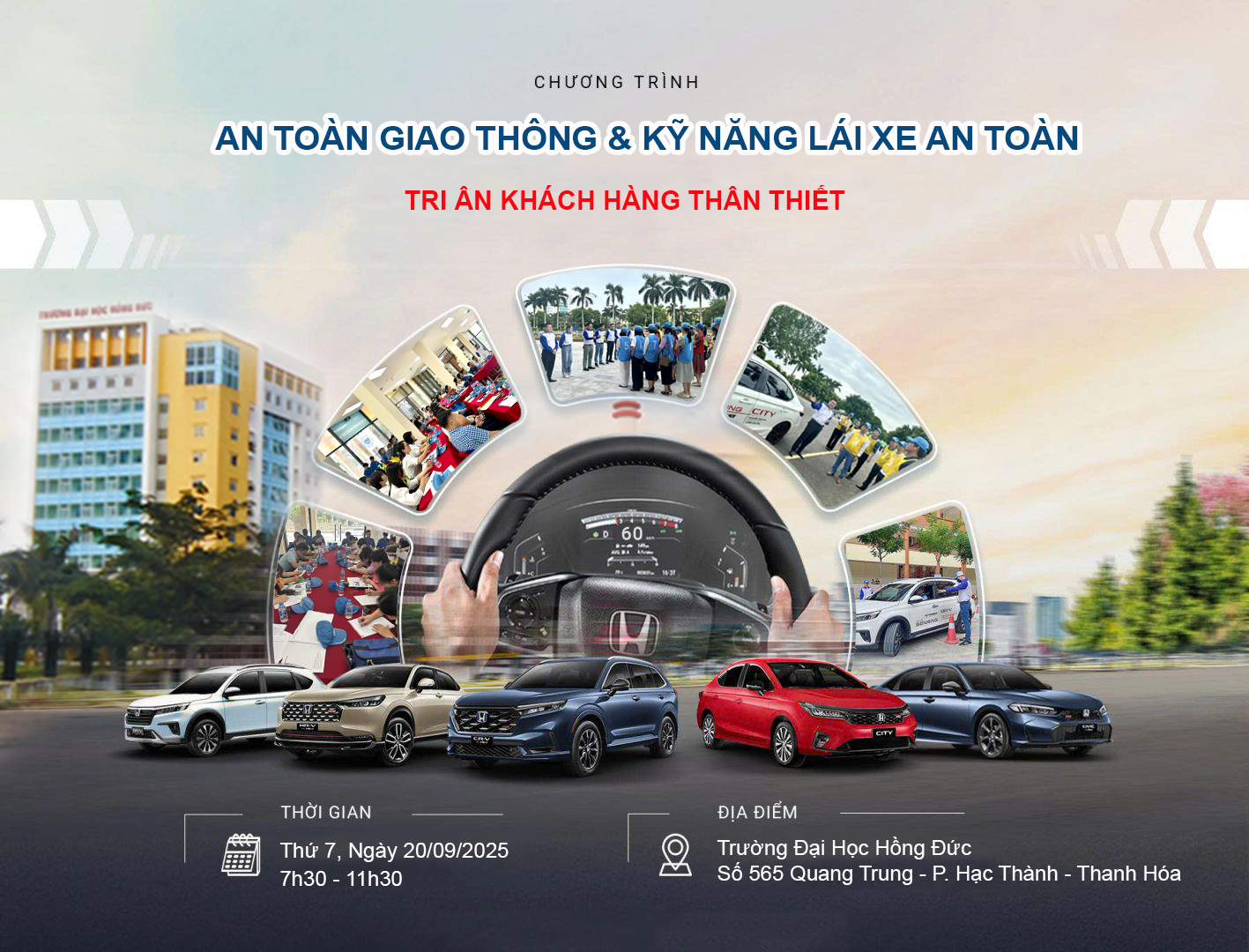 • Đối tượng tham gia: Tất cả mọi người có bằng lái ô tô • Thời gian: 7h30 đến 11h30. Ngày 20/09/2025 • Địa điểm: Trường Đại Học Hồng Đức • Hotline đăng ký: 094.194.7766 Với mong muốn đem đến cho khách hàng những trải nghiệm mới phù hợp và kiến thức bổ ích, Honda […]