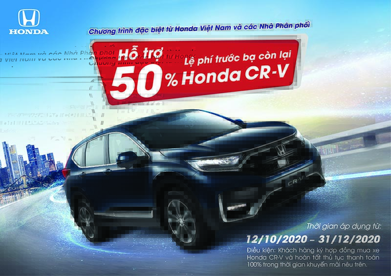 Ngày 12 tháng 10 năm 2020 – Công ty Honda Việt Nam (HVN) và các Nhà phân phối ô tô Honda triển khai chương trình hỗ trợ 50% lệ phí trước bạ từ ngày 12/10/2020 đến 31/12/2020 cho khách hàng ký hợp đồng mua xe Honda CR-V và hoàn thành thủ tục thanh toán trong […]